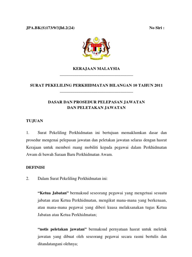 Spp102011 Dasar Dan Prosedur Pelepasan Jawatan Dan Peletakan Jawatan Pdf